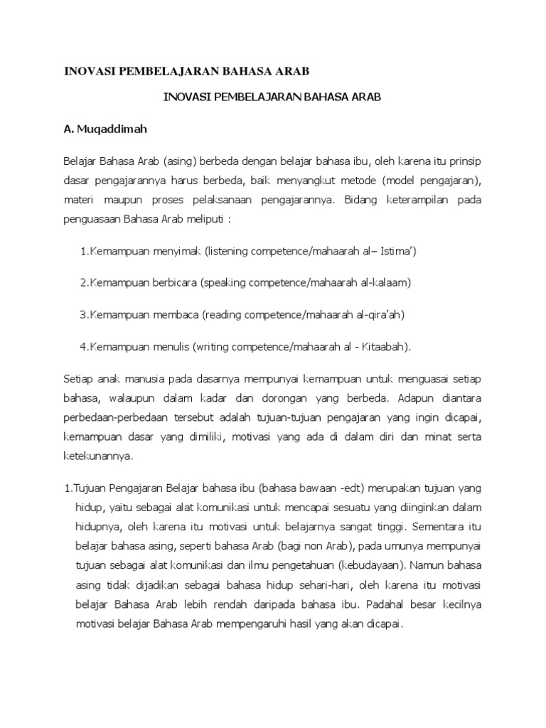 Inovasi Pembelajaran Bahasa Arab