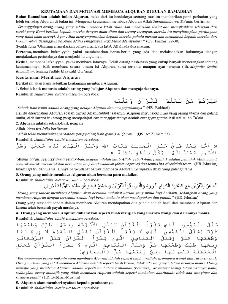 Dahaga Hati Keutamaan Dan Motivasi Membaca Alquran Di Bulan